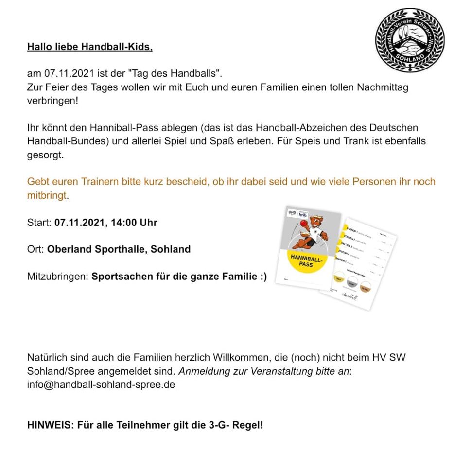 Am Sonntag den 07.11.2021 wurde deutschlandweit, der vom DHB ausgerufene, "Tag des Handballs" gefeiert.